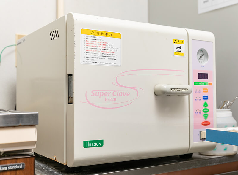 使用後の治療器具は、すみずみに至るまで丁寧に洗浄した上で滅菌器にかけています。治療のたびに繰り返し消毒を行い、患者様同士の交差感染リスクを軽減するよう心がけています。